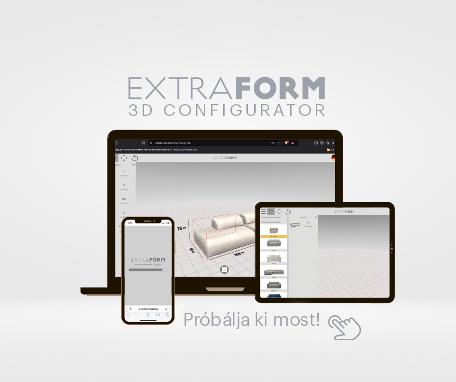 A digitális felület már a rendelés előtt megmutatja, hogyan illeszkedik a kiválasztott darab a térbe, biztosítva a kényelem, a funkció és az esztétika összhangját. Kezdje el most, és alakítsa ötleteit valósághű, elegáns megoldássá.